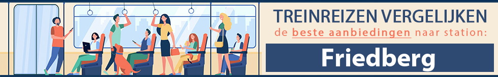 Een gunstig treinkaartje bestellen naar Friedberg doen de meeste mensen via internet. Zo kan jij kiezen voor een handige Omio, Treinreiswinkel.nl of Thetrainline.com. Er zijn ook directe mogelijkheden bij NSInternational en de Nationale spoorwegmaatschappij van Duitsland (DB). Treinritten in Duitsland zijn te reserveren via www.bundesregierung.de of middels de telefoon 04930311682904.