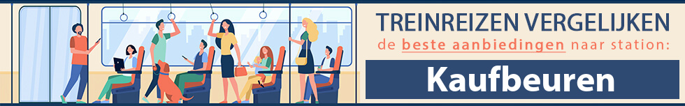Jouw treintickets kopen naar Kaufbeuren gaat het snelst via het internet. Bekijk onder andere gebruiksvriendelijke treinkaartje-vergelijkers die de tickets van alle bekende touroperators voor jou onderzoeken. Zo bekijk je alle routes en prijzen op 1 plek Je kunt ook boeken bij de nationale spoorwegen Duitsland (DB). Wellicht ook interessant is reizen met een treinpas (bijvoorbeeld Interrail). In deze lijst delen we de beste boekingssites.