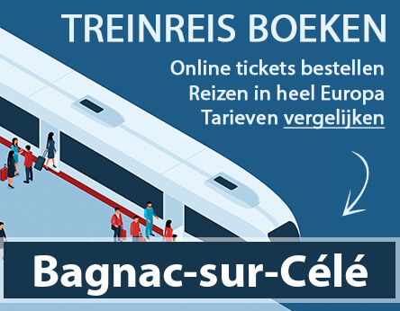 Een gunstig treinkaartje bestellen naar Bagnac-sur-Célé doe je meestal via internet. Zo kun je kiezen voor een boekingsplatform zoals Treinreiswinkel, Omio of Thetrainline.com. Je kan ook kiezen voor de service van NSInternational en de Nationale spoorwegmaatschappij van Frankrijk (SNCF). Treinritten in Frankrijk kan je ook vinden bij www.diplomatie.gouv.fr of per telefoon via 0033184943635.