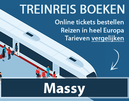 Een goedkoop treinkaartje bestellen naar Massy kan je binnen enkele minuten doen. Je kunt gebruik maken van een vergelijkingssite als Treinreiswinkel.nl, Thetrainline of Omio. Ook kun je boeken bij NSInternational en de landelijke spoorwegmaatschappij van Frankrijk (SNCF). Treinritten in Frankrijk kan men reserveren middels www.diplomatie.gouv.fr of via de telefoon 0033184943635.